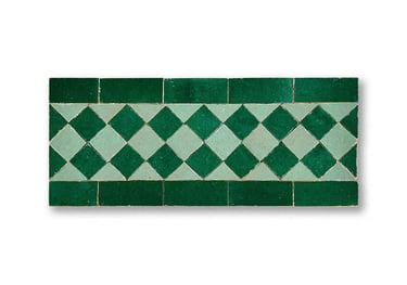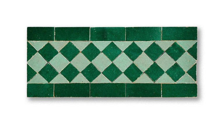 Narrow, decorative strips used to frame doors, mirrors, or floor sections. These "Frise" tiles often feature two-tone patterns (Black & White or Blue & White...) to provide a sharp, clean finish to a Zellige installation.